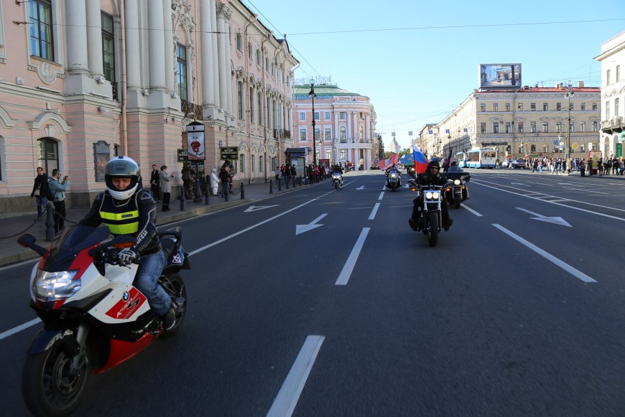 За 45 минут до начала движения приехали Ночные волки во главе с Хирургом. Пока Залдостанов общался с прессой и фотографировался со всеми желающими, президент Северо-Западного отделения НВ улаживал формальности с ГИБДД. Как организатора, несколько сотрудников полиции ознакомили его с требованиями, среди которых были наличие шлемов, документов и номеров. После этого он подписал бумагу об ответственности за соблюдение требований. В символическое для Ночных волков время 14:23 колонна стартовала. Как многим известно, 14 и 23 это номера букв N и W в алфавите.
