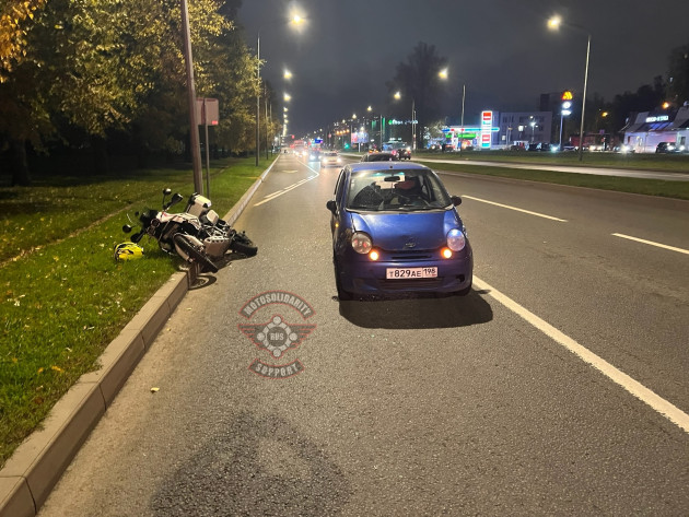 Дтп с мото 10.10.2025 в 18:55 на пр. Маршала Блюхера (59.976411, 30.404150). Авто и мот. Мотоциклист в порядке.