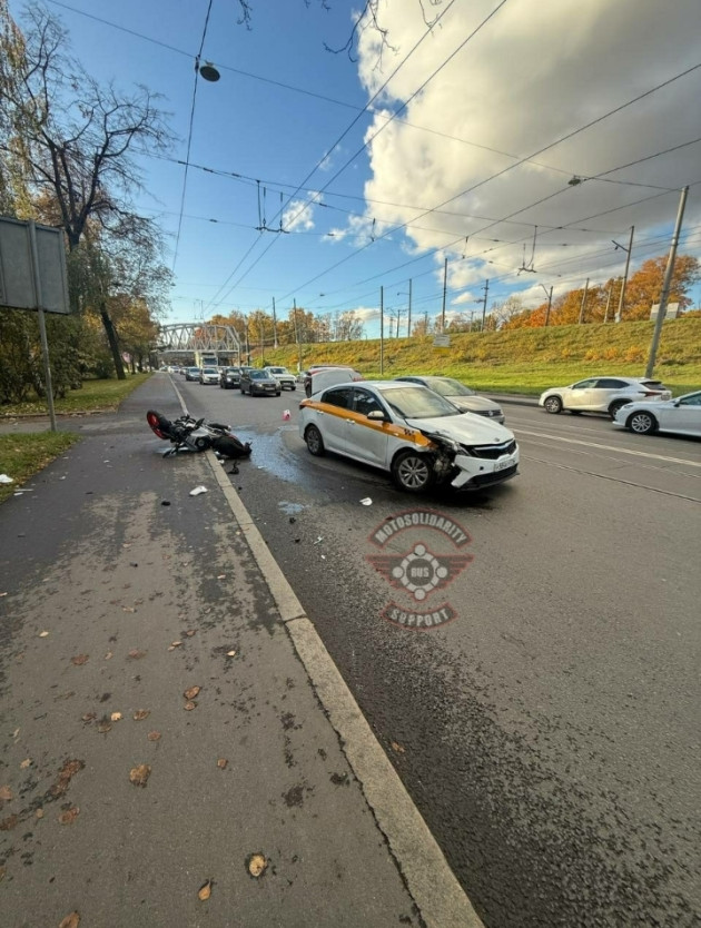 Дтп с мото примерно в 15:25 на 1-м Муринском пр., д.11. Авто и мот Yamaha MTN320-A номер 1467АК47. Мотоциклист Бычков Даниил (в сознании, травма ноги) ждёт скорую.