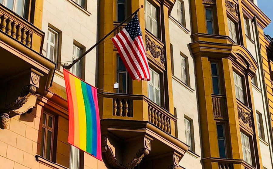 Демократические игры не знают границ. В качестве троллинга Поправок в конституцию России на посольствах США был вывешен флаг ЛГБТ.