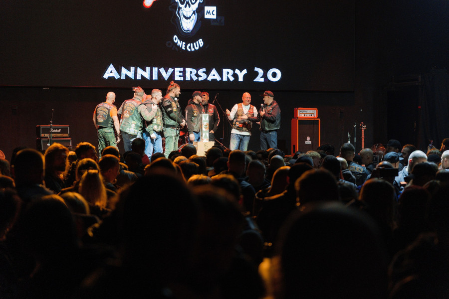 Девушки в красном и совсем немного «подруг», ковровая дорожка и поздравления со сцены. Практически не было не клубных байкеров, все на официальном настроении и клубной символике. Все показывало цель: собрать клуб и подчеркнуть другим масштаб и географию.
