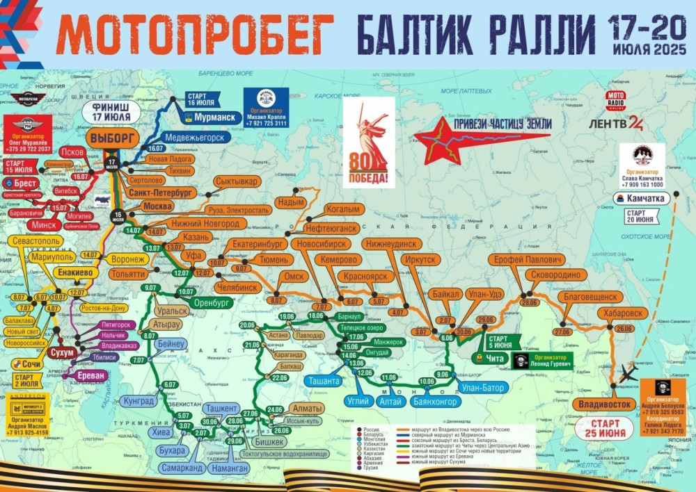 И снова возможность осуществить мечту: пробег через всю Россию, от Владивостока до Выборга на Baltic Rally. Организаторы решили повторить, а я как прошедший маршрут в роли координатора расскажу подробнее. И так, старт основного маршрута из Владивостока состоится 25 июня, по дороге к Выборгу через всю страну, собирая новых и новых участников. Параллельно будут идти пробеги: из Белоруссии, Сочи, Абхазии, Армении, длинный через Монголию, Казахстан, и Узбекистан. По ощущениям, вся Россия будет куда-то ехать в эти дни.