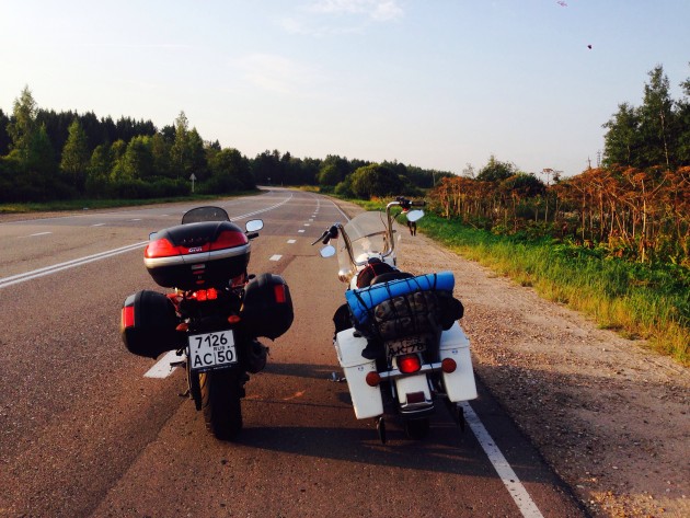 По дороге встретили и познакомились с Вовой Корбафозом из Зеленограда, он сдавал норматив "железной жопы", оказалось что уже зарегистрирован на МотоРоссии - прикольно.