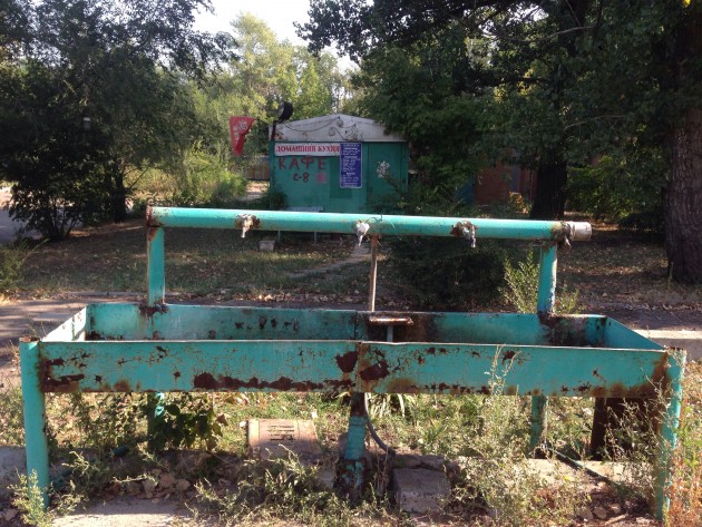 В итоге решили останавливаться по схеме Шведа, там где ночуют дальнобойщики, где-то под Камень Шахтинском. 400 койка-место + 50 стоянка мотоцикла. Место оказалось мягко говоря брутальным... Какие-то вагончики, туалет естественно на улице, умывальник... Уххххх... И поужинали на 2000 в таком-же месте на другой стороне дороги.