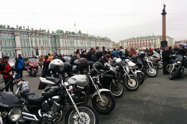 Сбор на Дворцовой площади, завершение пробега в парке 300-летия. Там в эти дни проходит крупнейший в России реконструкторский-патриотический фестиваль «Весна Победы» под эгидой военно-патриотической организации «Красная Звезда», при поддержке губернатора Санкт-Петербурга и комитета по молодежной политики.