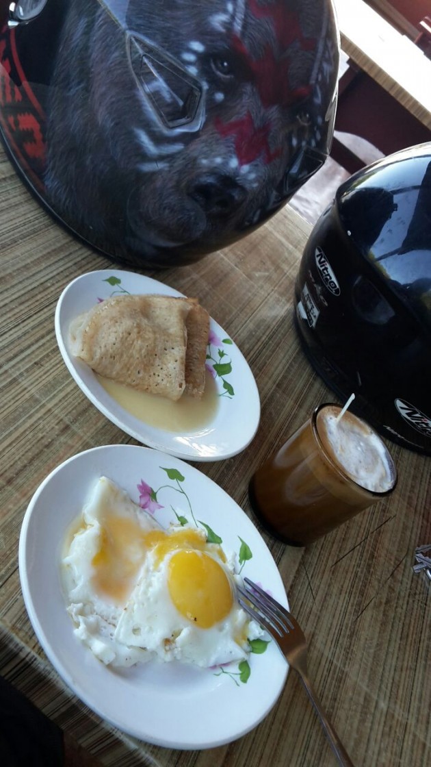 «Лайфхак от Дениса! И никакое солнце не страшно!», «Приятного! Толя, видел как шлем надо тюнинговать!?», «Поздно Маша, поздно! Солнце уже высоко», «Но за совет спасибо!», «Какой банальный набор))) Приятного аппетита))», «А так?», «Нууу... я вот яичницу с помидорами заказал, на меня посмотрели так, как будто я попросил их приготовить рыбу Фугу. Переспросили два раза - с чем мол?!))) И в итоге принесли без помидоров»