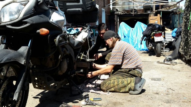 «Ефим поехал.. Пока другие работают..», «Ефим, Женя! Звезду и бублик нашли в Благе. Вечером привезут в Свободный. От Читы до Свободного 1,4 км. Если завтра встанете пораньше - можете шагнуть прямо туда. Дорога позволяет. Там и отдохнёте и отремонтируетесь (Сергей поможет). А днём Ольга заедет на замену цепи.», «Масло поменял, тормозуху и цепь тоже», «Цепь и звезда - это быстро, а с бубликом - можно конечно и монтажками, но лучше, чтоб шинка работала. Сергей колесо скинет, отвезёт в шинку и потом поставит.»