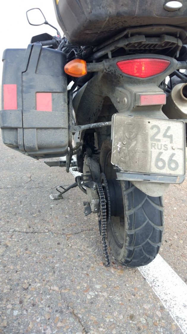 Но день добавил ярких красок. Первое место занимает цепь Ефима, звенья которой на сотне решили разорвать взаимоотношения.. последующая блокировка заднего колеса.. и проверка реакции едущих за Ефимом.. Отзывчивость местных жителей (еще раз спасибо, дядя Саша), вкус бурятских поз и красота ночного Улан-Удэ..