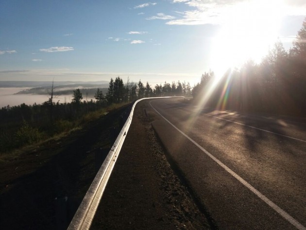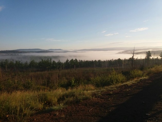Испытал сегодя фантастические чувства от вечернего прохвата. После душного, изнуряющего зноем дня в силу вступает вечер. Прохладный влажный воздух проникает в вентялиционные клапана экипа, обволакивая и охлаждая давно ждущее этого тело. Природа начинает менять цвета. Под косыми лучами заходящего солнца, они меняют оттенки и обретают неземную интенсивность. Петляющая лента асфальта то поднимаясь, то стремясь вниз уходит за горизонт. Холмы, раскинувшиеся по обе стороны от дороги, похожи на английский газон, на котором шаливший потомок великана разбросал гроздья камней, играют всеми оттенками зеленого - от салатового до изумрудного. Местами, яркими желтыми и лиловыми пятнами, радуют глаз представители местной флоры - цветы не известных мне названий. Предночный туман неспеша заполняет низины своим полупрозрачным телом молочного цвета. Природа готовится ко сну.. От этого великолепия впадаешь в эйфорию полета и с новыми силами крутишь ручку газа, стремясь к родине восхода солнца. А над всем этим - высокое забайкальское небо. Кристально синее, с легкими мазками перьевых облаков. И чем ниже садится солнце, тем сиреневей становятся эти парообразные небесные странники, и тем ярче становятся видны звезды..