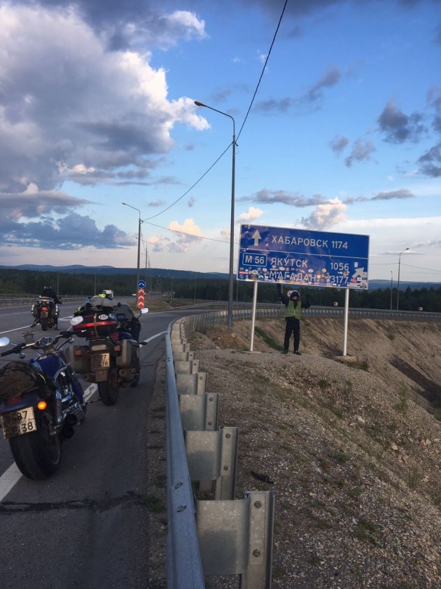 «До Хабаровска нормально.», «А вы где сейчас?», «Самый свободный кусок - Чита Хабаровск», «По Хабаровску придётся немного по городу проехать. Пару часов убьете», «Самый - самый - Чита - Биробиджан)))», «В ЕАО дороги не очень», «На повороте в биробиджан есть пару отелей со стоянкой внутри для мото», «Не забудьте у стеллы Москва-Владивосток отметится. Прям на въезде в ЕАО»
