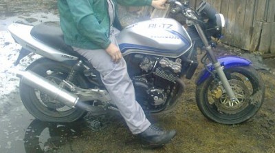 У друга угнали мото: Honda CB400SF. Сам мотоцикл - серого цвета, но переднее крыло выкрашенно в синий, номеров нет. Впрочем как и поворотников с зеркалами.