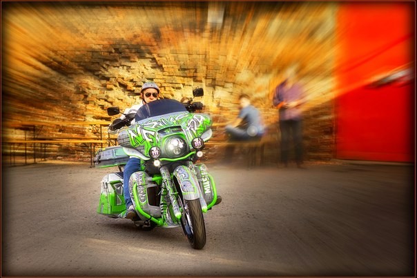 Но тут как раз пришел самый настоящий Денис Щапов. Многим известный мотоциклист, умеющий неплохо ездить на одном колесе на любой технике и большой любитель экспериментов с внешним видом мотоцикла.