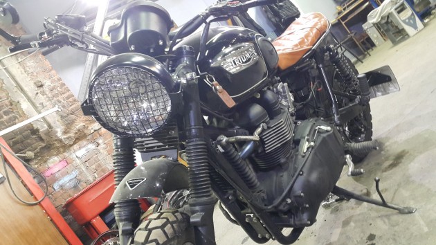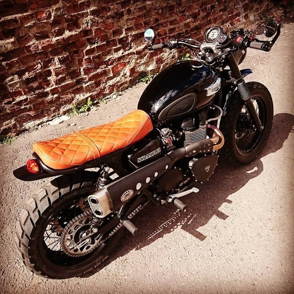 Этот прекрасный мотоцикл, мы в дальнейшем превратили в проект Caferacer-Scrambler. Исходя из наших скромных познаний в данном вопросе и информации в открытых источниках, эти два стиля немного отличаются. Первое отличие в том, что Scrambler - более внедорожная модель, изначально предназначенная для деревенских покатушек в британских предместьях и комплектуется «эндурными» колесами с ярко выраженными грунтозацепами, Caferacer же комплектуется ретро радиальной резиной, опционально с белыми буковками на бортах ;) Второе принципиальное различие – на Scrambler глушитель установлен высоко над землей, вероятно для преодоления водных преград, но в нашем случае это сделано просто для красоты.