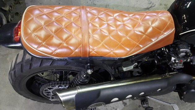 Само сиденье ваял наш мастер по коже Антон (Moto Creative), который давно и успешно создает кресла и кофры на стандартные мотоциклы и кастом проекты.