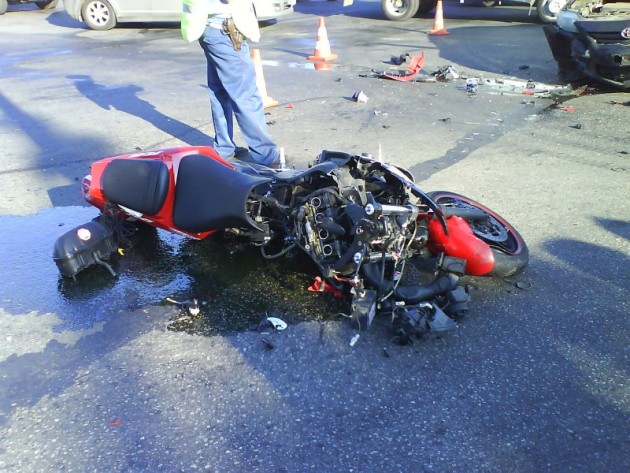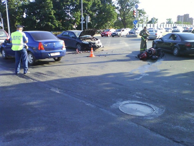 ДТП произошло около 17 часов вечера. Водятел поворачивающий на лево после поста, не пропустил помеху справа, а именно Yamaha R6, слава богу пилот остался жив. И куда только смотрят эти дятлы за рулём четырёхколёсного чуда.