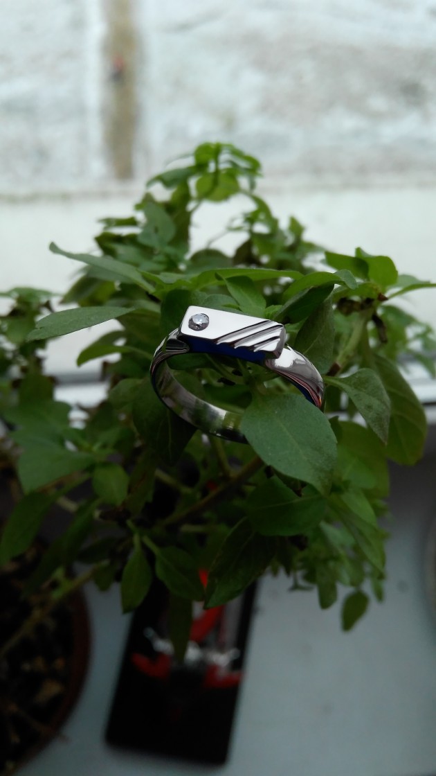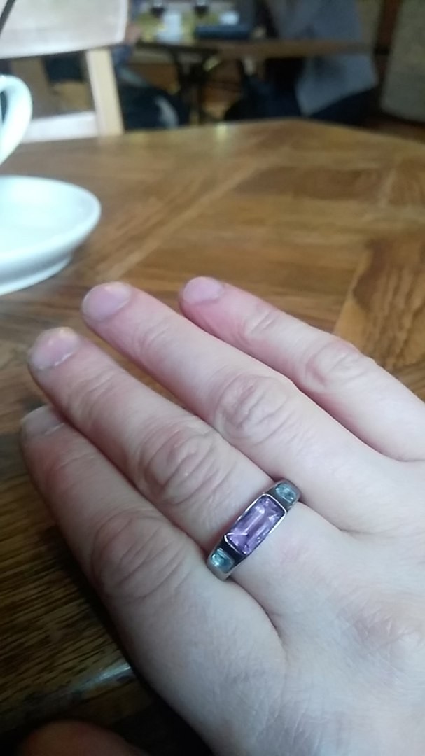 Далее ниже следуют: перстень из титана с палладием, с аметистом и двумя голубыми топазами