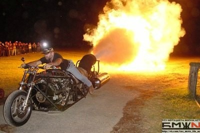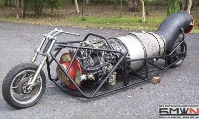 Откуда же такая мощь? Все благодаря авиационному реактивному двигателю Rolls-Royce Viper MK.202 Turbojet. Хотя сам байк построен на базе вполне серийной модели от Yamaha — FJ 1200. Мотоцикл сделан специально для заездов на четверть мили. К сожалению, его скоростные характеристики не сообщаются, однако мы уверены, что они впечатляют воображение.