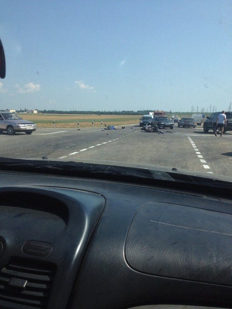 Трасса порт Кавказ на Крым ,поворот на тамань Авто и мотоцикл питерский г/н 1667 АН 78 пилот мертв. Мот ZZR 600 может кто узнает.