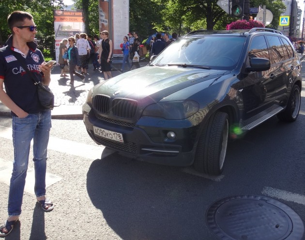 Вчера, ярким солнечным днем, на пл.Восстания - я был жестко подрезан BMW X5, гос.№ А 090 КО 178, под управлением господина в черных очках (на фото)..Контакта я сумел избежать, спасибо конструкторам HONDA GW..