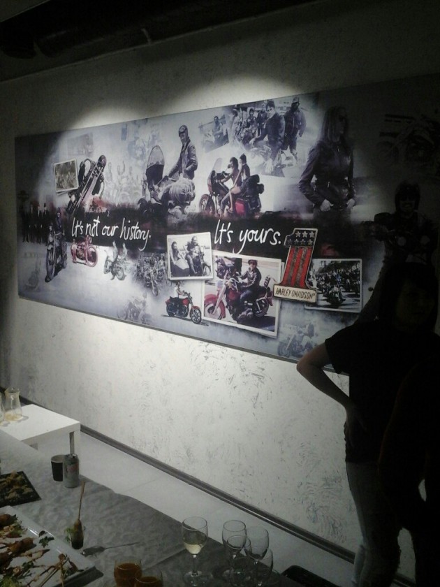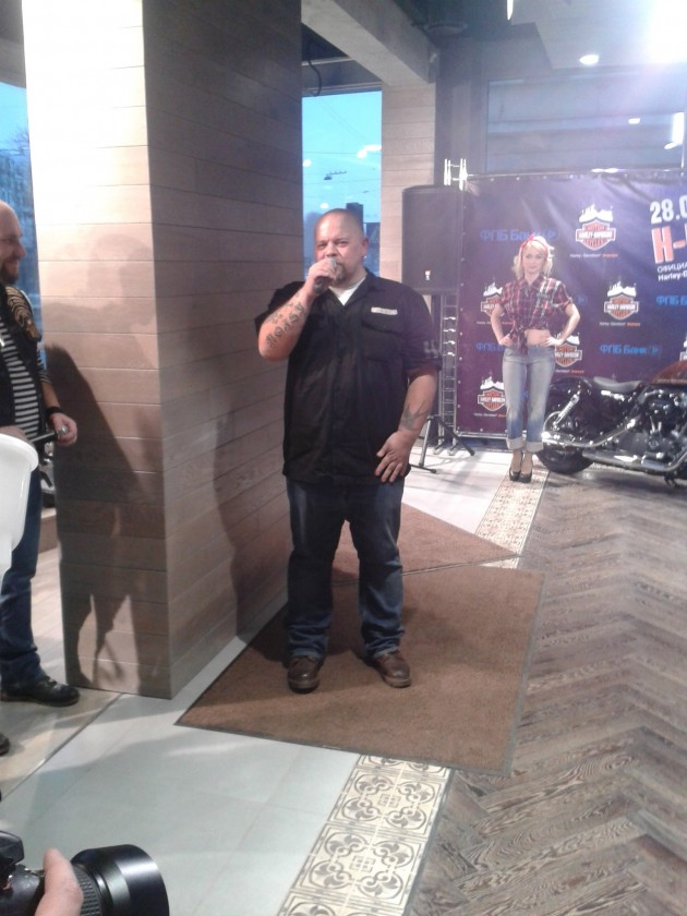 «Это не наша история! Это твой Харлей» - слоган, возвышающийся над фуршетом очень достойного уровня. Атмосфера царила душевная, несмотря на то, что 80% было москвичей. Максим Белоусов – генеральный директор дилерского центра, оказался фактурным и интересным человеком. На конференции, длящейся несколько минут в центре зала первого этажа он поведал, что создание центра началось в июне месяце. И конечно если бы ему предложили открыть дилерский центр в Петербурге сейчас, он бы задумался. Но отступать, как говорится уже некуда. Сзади Москва. Поэтому только вперед!