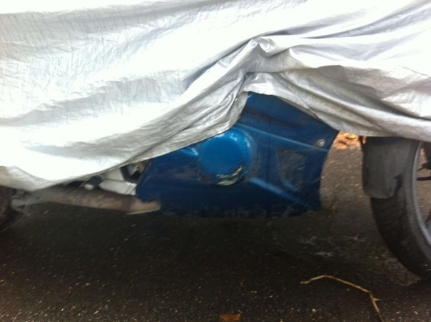Во дворе вторую неделю стоит под чехлом мотик без цепей и каких либо замков. Двор такой, что вот вот его кто нить укатит!!! Может в угоне и стоит отстаивается?! Хозяин отзовись!