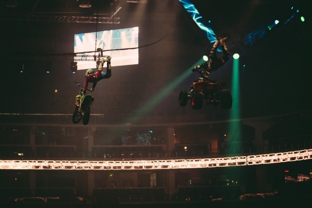 Это целый экстрим-спектакль, в котором задействованы мотоциклисты, актеры цирка, и спортсмены, владеющие техникой фигурного управления велосипедов, квадрациклов и даже снегоходов.
