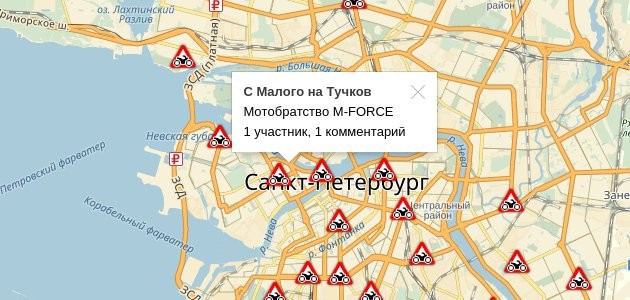 Если вы являетесь мото объединением или у вас большая компания друзей, вы можете связаться с Алексеем Ветром для получения материала и выбора отдельной точки.