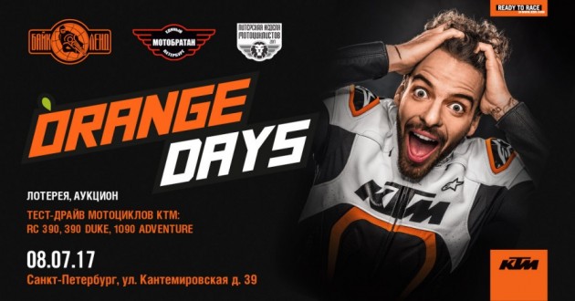Так или иначе, в нашем городе у любого желающего увидеть живьем и пощупать эту технику появится возможность сделать это 8 июля – в первый день «Питерской Недели Мотоциклистов». У дилера «КТМ», в салоне «Байк Ленд», состоится мероприятие под названием «KTM Orange Days». Это праздник, который проходит во многих странах, и наш город теперь не исключение.