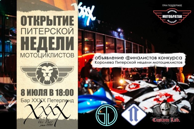 Начнется неделя с Фестиваля «Мотоневест 2017», который пройдет в баре «ХХХХ» Питерлэнд.