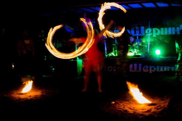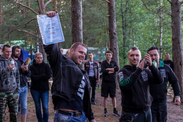 Ставший уже легендарным забег голышом в озеро собрал с десяток смелых купальщиков. Степа Дизель подогревал активных участников конкурсов подарками и призами.