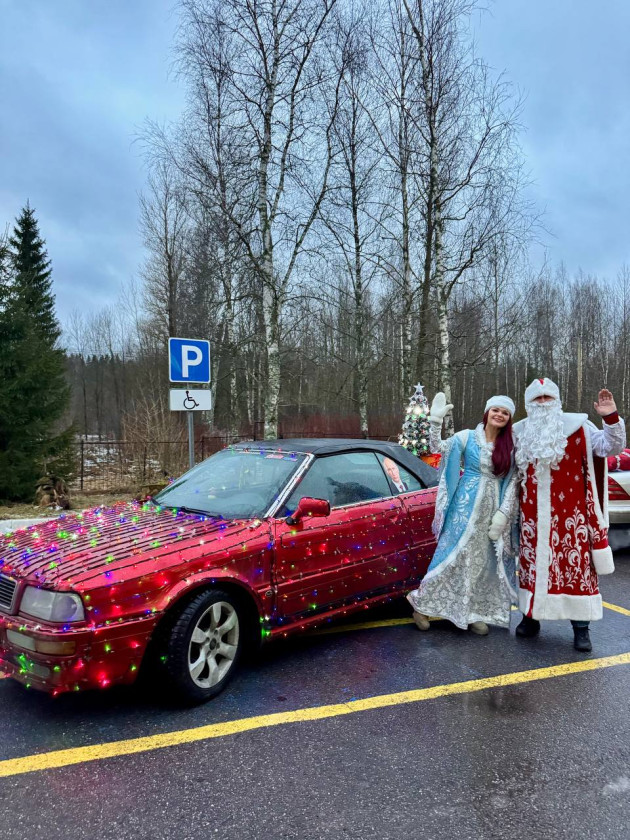 Праздник начался с яркой выставки новогодних машин-кабриолетов, украшенных ярками гирляндами и елками на багажниках.
