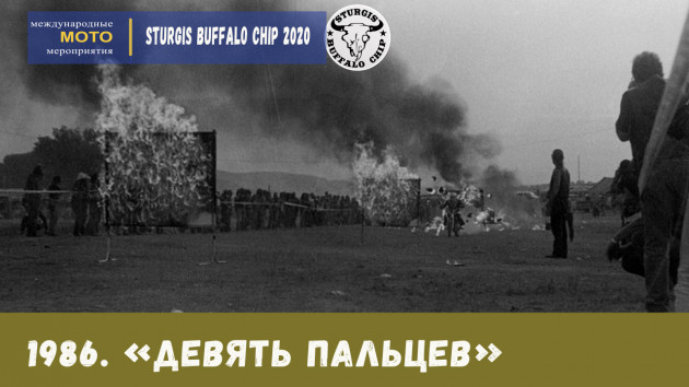 1986. Гости фестиваля получают настоящую душевую вместо прежней бочки! Кемперы приветствуют современные удобства, принимая теплый душ и попивая холодное пиво. В честь основателя Sturgis Rally Паппи Хоэла и его трюка «Крушение горящей стены» проводится ставший впоследствии ритуальным опасный аттракцион «Девять пальцев». Участник аттракциона пробивает на мотоцикле 9 пылающих стен.