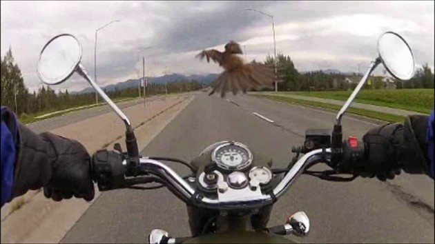 "Я клянусь, что так оно и было! Я просто ехал себе по своим делам, а тут вдруг чайка прилетела прямо в меня, когда вот здесь поворачивал. Она врезалась мне в руку и я упал ".
