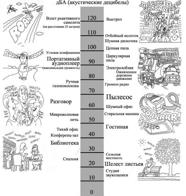 Болезненнее всего организм человека реагирует на шумы во время сна. У спящего уши становятся основным источником информации, чувствительность слуха увеличивается примерно на 14 дБ. Неопасным считается уровень шума от 40 до 55 дБ — это сравнимо с разговором людей в небольшом офисе, когда собеседники находятся рядом. 80 дБ — это как шум пылесоса или звук от мотоцикла с глушителем. В вагоне метро на ухо давят 95 дБ, в самолете — 130, и это уже фиксируется как болевой порог. При уровне звука выше 160 дБ возможны травмы, разрыв барабанных перепонок и даже летальный исход.
