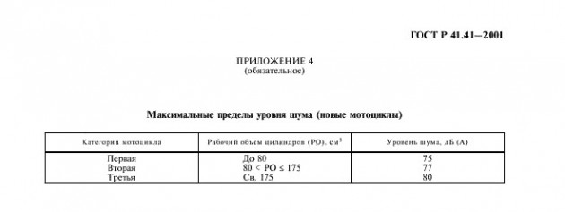 Нормы уровня шума мотоциклов определяет ГОСТ Р 41.41-2001