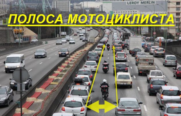 На дорогах с несколькими полосами движения в одном направлении мотоциклисты перемещаются в любом междурядье, а автомобили располагаются на ширине полос хаотично, преграждая им дорогу и затрудняя движение.