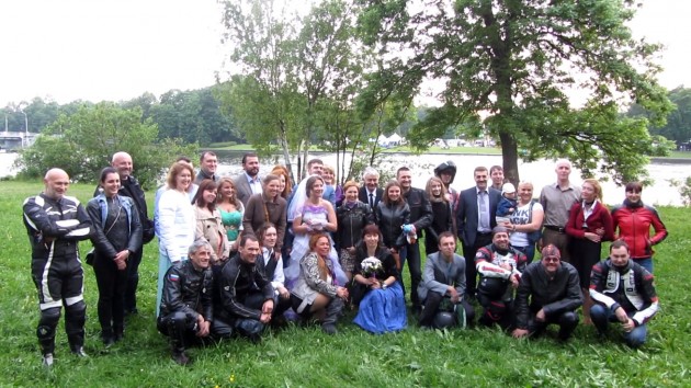 Добравшись до красивого места на берегу реки где-то в дебрях Крестовского острова, мотосвадьба провела обряд бракосочетания по нашим законам. Не буду ее описывать, ведь пирожка мне не досталось. А кто бы смог красочно описать этот священный ритуал на голодный желудок?