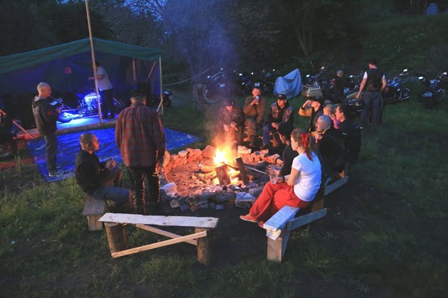 Я не фанат тяжелого рока и металла. Некоторые из представленных мелодий не вызывают у меня ответных чувств. А уж на самих байкфестах, где начинающие и никому не известные группы необоснованно громко вдалбливают в замутненные алкоголем головы слушателей всякий бессмысленный трэш, я стараюсь держаться подальше от сцены. И должен признаться, не я один. Это обычная картина дневной программы большинства многодневных фестов, когда усталые, перепившие мотоциклисты отсыпаются где-то в палатках, вяло подъедают остатки вчерашнего пиршества или бесцельно бродят от лагеря к лагерю в поисках выпивки и приключений. И только небольшая группа в стельку пьяных сограждан бьется в танцевальном угаре перед сценой. Чаще всего это вновь образовавшиеся пары с выносливыми дамами, которых кавалерам никак не удается споить до состояния «В койку!»