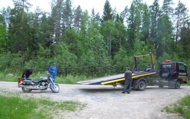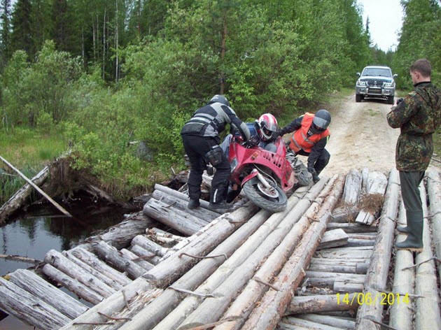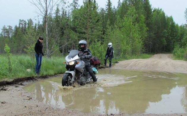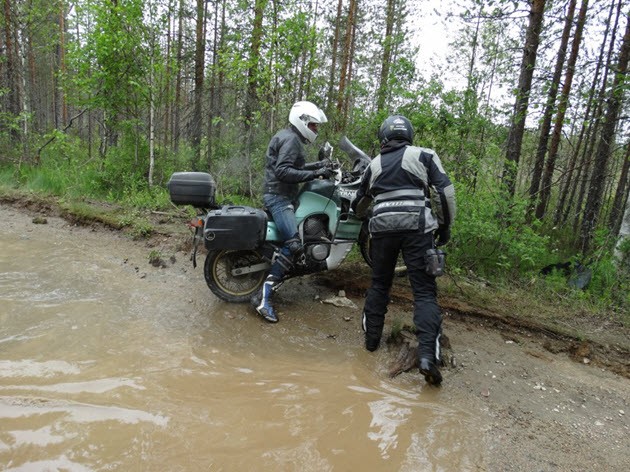 Возвращаясь к различным видам мотоциклов, их удобству и надежности в дальних поездках по пересеченной местности, хочу рассказать об этом легендарном прохвате, состоявшемся в июне 2014 года. Маршрут пролегал из Петербурга в Карелию и был рассчитан на 4 дня несложных марш-бросков по 150 километров за раз с посещением нескольких культовых точек на карте региона. В связи с тем, что планы составлялись простым гуглением интернета, организаторы решили, что дороги в этом районе должны быть легко проходимы для всех видов мотоциклов и для мотоциклистов с любым опытом. Эта небольшая ошибка и превратила прекрасную задумку сначала в ад преодоления пределов возможностей человеческого организма, а потом в самое ярчайшее воспоминание сезона.