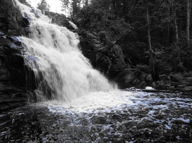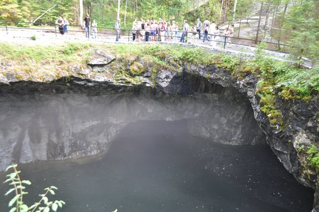 Итак, команда оптимистов в первый день планировала стартовать в 9 утра, преодолеть 500 км, двигаясь по мурманской трассе примерно со скоростью 100 км/час, с заездом в поселок Старая Ладога, прогулкой по Крепости, заходом в Никольский монастырь, остановками на заправках и прибытием к 22-м часам к самому большому односкатному водопаду региона «Белые мосты» высотой 19 метров. Мы же с друзьями решили вместе ехать прямо к Горе Духов Воттоваара, но моя бессонница выгнала меня в поход раньше остальных. В 6-00 я отправился в путь в пока еще небольшом потоке машин выходного дня. Все мосты по дороге, как это у нас водится, решили начать одновременно ремонтировать, так что перед ними начинали скапливаться пробки. В 8-30, преодолев 130 километров, я уже покупал копченую рыбу в Юшково и болтал по телефону с теми, кто только собирался в исходном пункте маршрута.