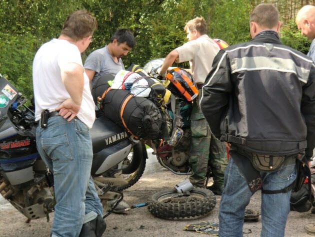 Призыв быстро собрал около 30 малоопытных, но мечтающих попробовать свои силы в настоящем дальнобое мотоциклистов обоих полов, с пассажирами и без, на самой разнообразной технике. Никому не было отказано, поэтому конюшня в результате состояла из следующих скакунов: тур-эндуро, спортбайки, классики, чопперы, пара машин и даже макси-скутер. Раз уж мы говорим о надежности, то приведу подробные данные этой техники: