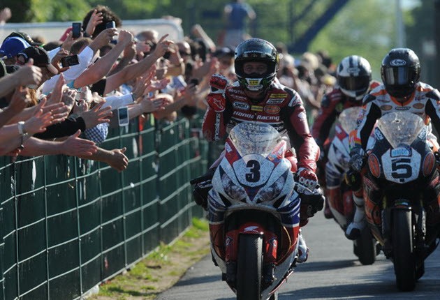 Гонки Isle Of Man TT включают несколько заездов для мотоциклов разных классов, вплоть до мотоциклов с колясками, по кольцу длинной 61 километр. Участники проезжают 6 кругов, стартуя в столице острова городе Дугласе, и проносятся по дорогам, лишь частично огороженным заборами и щитами. Полиции мало, за всеми ей не уследить, поэтому безопасность зрителей является делом самих зрителей. Пользуясь возможностью, болельщики облепляют трассу, как муравьи. На самых зрелищных поворотах установлены трибуны, на которые нужно покупать билеты. Но смотреть все с одного места не интересно, поэтому зрители без конца куда-то перемещаются. Летящий над лидерами гонки вертолет дает возможность гуляющим болельщикам отслеживать ход соревнований и вовремя занять свободные места возле трассы при приближении участников.