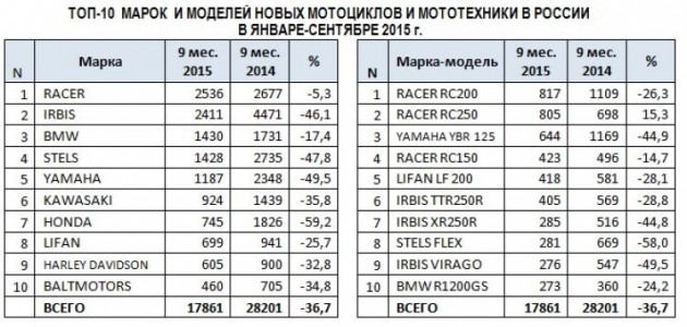 Исследование показало, что россиян больше всего интересуют продукты отечественной мотопромышленности, а также мотоциклы, традиционно считающиеся «нашими» ещё с советских времён. Безусловным лидером стала чешская Jawa — за два месяца мотоциклам этой марки было посвящено более 700 тысяч поисковых запросов. На втором месте — двухколёсный транспорт Ижевского завода с почти 650 тысячами запросов. Замыкает первую тройку ирбитские мотоциклы с 550 тысячами запросов.