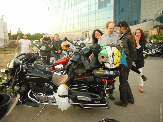 Один из гостей праздника привлекал к себе внимание не только навьюченным под завязку для дальнего путешествия мотоциклом, но и номером региона 65, что говорило о проделанном длительном пути. Михаил с Сахалина случайно попал на мероприятие, но планирует провести в Петербурге неделю, так что когда сможет вечером добраться до интернета, то изучит календарь БайкВика и присоединится к заинтересовавшим его прохватам.