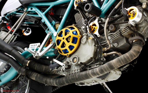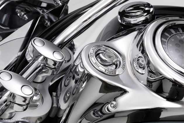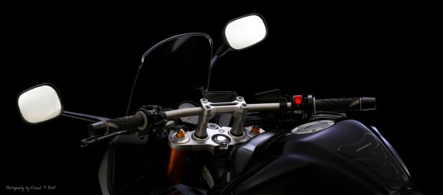 «Мы столкнулись с огромной проблемой, связанной с освещением. Диапазон цветов окраски мотоциклов оказался необычайно широк, а в сочетании с переливами хрома и глубоким черным цветом шин оказалось довольно сложно подобрать подходящее оборудование. Даже небольшое изменение температуры в помещении преображает картинку на фотографии. В решении этого вопроса я бы никогда не справился без моего друга, настоящего алхимика и повелителя цвета, Эли Уиппла»
