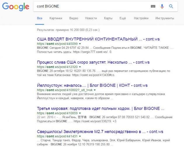 Бигван на интернет-платформе КОНТ, неплохо знающий английский и постоянно отслеживающий англоязычную прессу, первым выложил пост на русскоязычные просторы. БИГВАН монеторит сомнительные сайты и активно переводит скандальные статьи про конец Америки, взрыв в Йеллоустоун, всемирный заговор и так далее. Чем скандальнее и неправдоподобнее материал, тем более интересен он БИГВАНУ