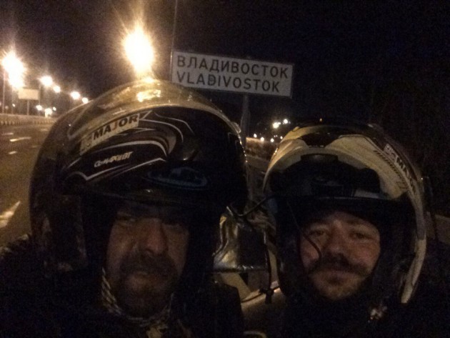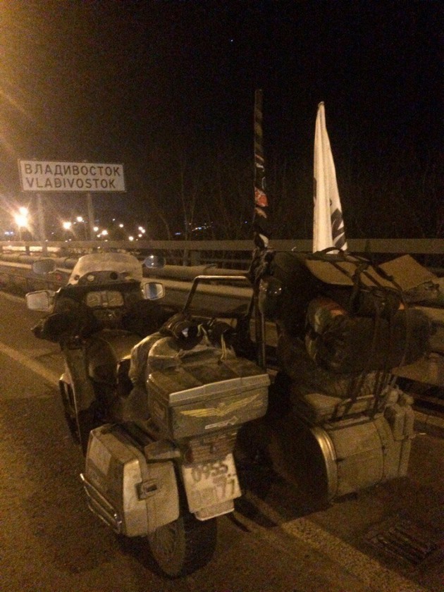 Вчера 31 января по московскому времени и 30-го по местному Сергей Валявко "Рояль" и Дмитрий "Гарфилд" добрались от Североморска до Владивостока, завершив начавшийся 3-го января мотопробег от Северного Ледовитого до Тихого океана. Обратно они полетят самолетом. Свой маршрут они проделали на BMW K100LT 1987 года выпуска. За 28 дней по заснеженной России они преодолели 11 500 километров!