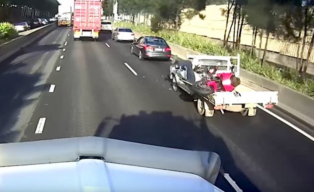На прошлой неделе мы обсуждали погоню финского мотобатовца за мотоциклистом. На этой неделе – короткий ролик о безобидном ДТП в Австралии с участием мотоцикла и грузовика