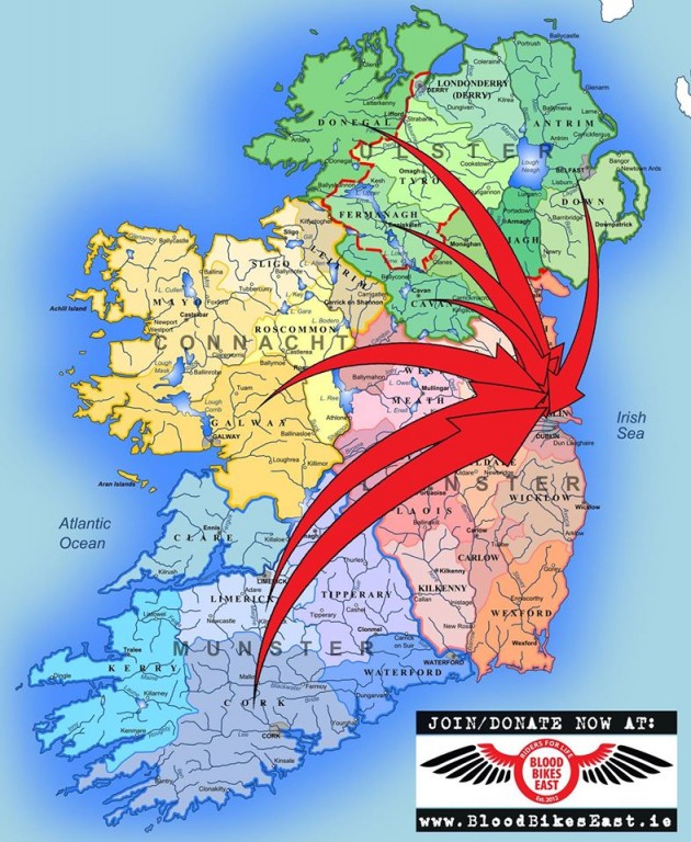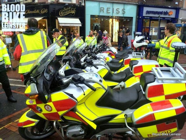 В Ирландии существует шесть региональных групп медицинской курьерской службы на мотоциклах. Blood Bikes East является одной из этих групп, базирующейся в Дублине. Она зарегистрирована как благотворительная организация, и ее члены работают исключительно на добровольных началах, предоставляя бесплатную помощь медицинским организациям в свое внеурочное время. Волонтеры перевозят медицинские препараты, как в черте города, так и на большие расстояния.