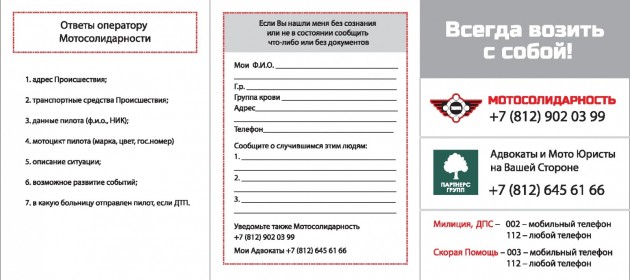 Памятка безопасности будет распространяться на Прохватах и встречах Проекта Мотосолидарность.